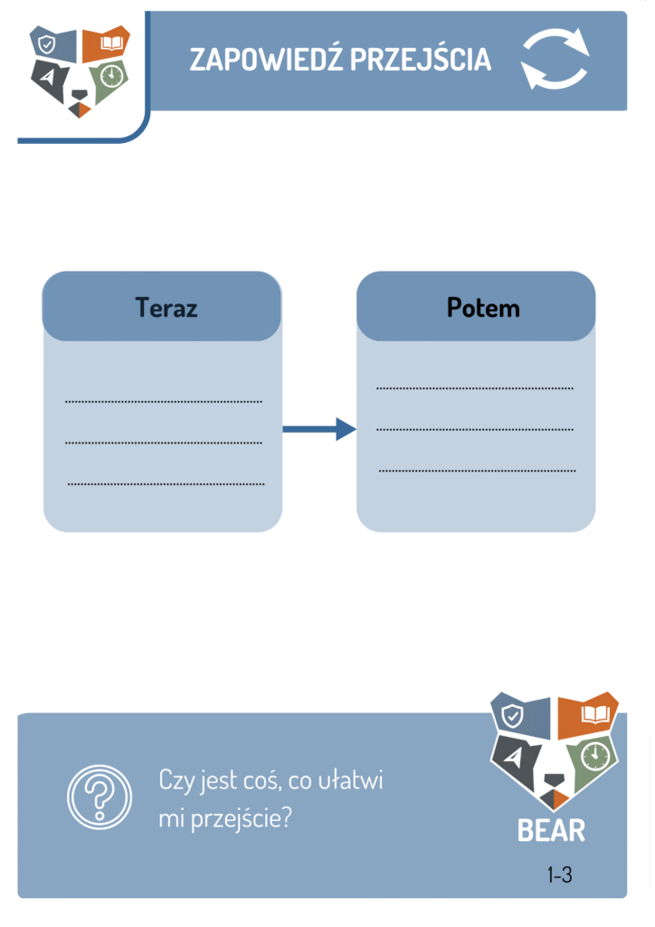 - przewidywalne przejścia między aktywnościami,