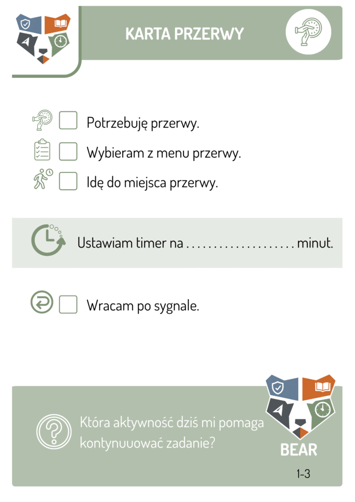 - skorzystać z przerwy według ustalonej procedury,